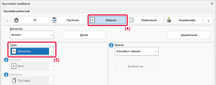 és a feladat nyomtatása nem megfelelően történik a [Gerinc Tűzés] beállítással,