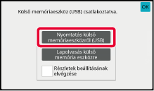 Amikor megjelenik a műveletválasztó képernyő, érintse meg a [Nyomtatás külső memóriaeszközről (USB)] lehetőséget.