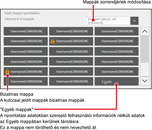 A felhasználók a nyomtatási adatokat a saját mappáikból nyomtathatják