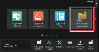 Ha az érintőpanelen nincs [Saját mappa nyomtatása] gomb, adjon hozzá egy [Saját mappa nyomtatása] gombot a kezdőképernyőn. A gomb hozzáadásának módját lásd: " PARANCSIKONOK HOZZÁADÁSA".