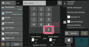van, az alapképernyőn az [R] gomb jelenik meg. Ha a PBX