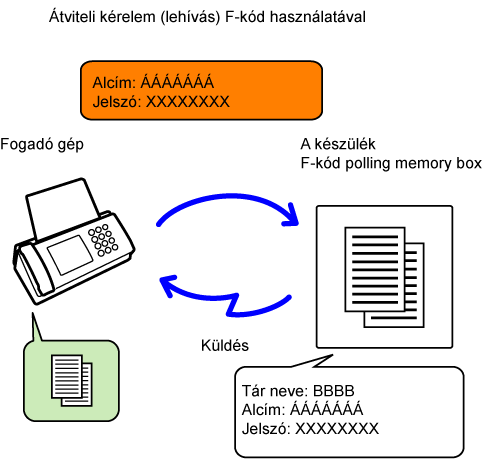 tárolt faxot küld a másik gépnek. A lehívási művelet során a másik