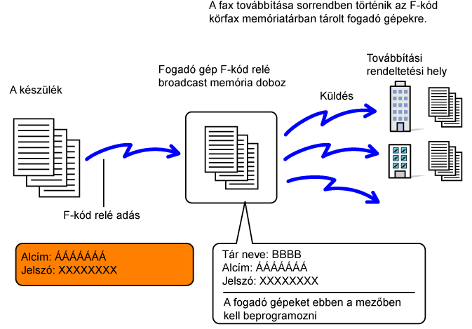A gép majd továbbítja a faxot minden a memóriatárba programozott