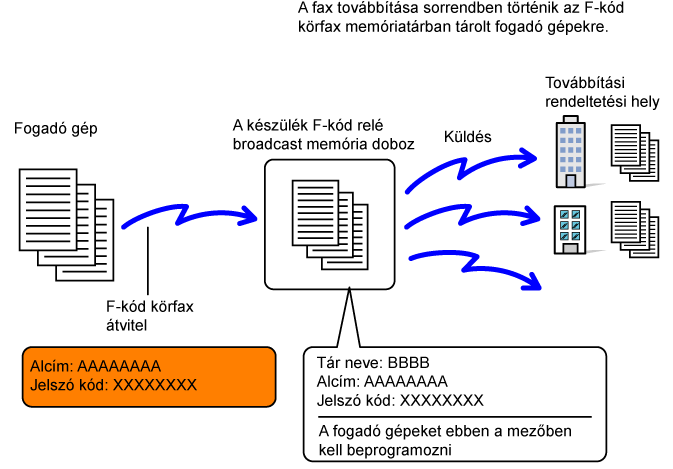 F-kód körfax memóriatárába, és kezdeményezi a fax több célgépnek