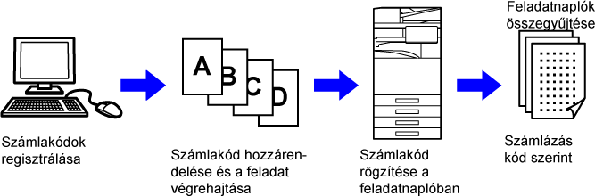 Az elvégzett nyomtatási és küldési feladatok eredményeinek a hatékony kezelés érdekében történő osztályozására szolgál. Például kódokat társíthat az ügyfelekhez, és ügyfelekre bontva gyűjtheti ki a költséginformációkat a feladatnaplókból. Példakód: "A" cég kibocsátása |