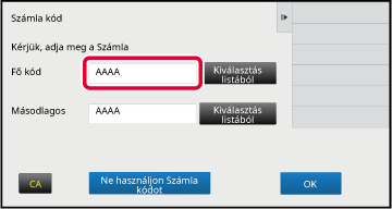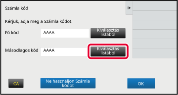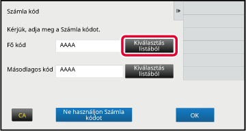 gombra.Ha megjelenik a számlakód-megadási ablak, koppintson a fő kódhoz tartozó [Kiválasztás listából] gombra.