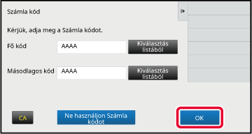 A műveleti panelen koppintson az [Számla kód megadása/szerkesztése] gombra.