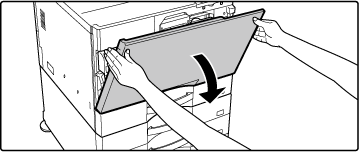 Trykk på begge sider av beholderen for toneroppsamling med hendene til låsene på venstre og høyre side kobles inn..png)