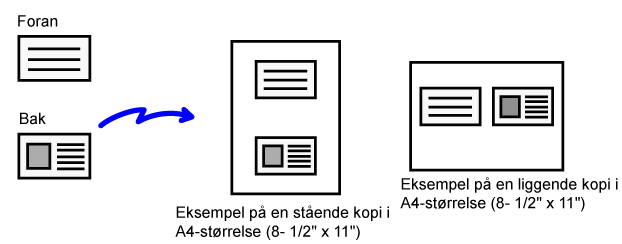 Begge sidene av et kort kan for eksempel kopieres til ett