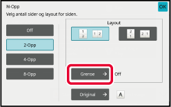 Velg 2-opp for å kopiere to originalsider til ett ark, 4-opp