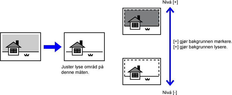 Hvis du endrer nivået for [Bakgrunnsjustering] til [+]-siden,