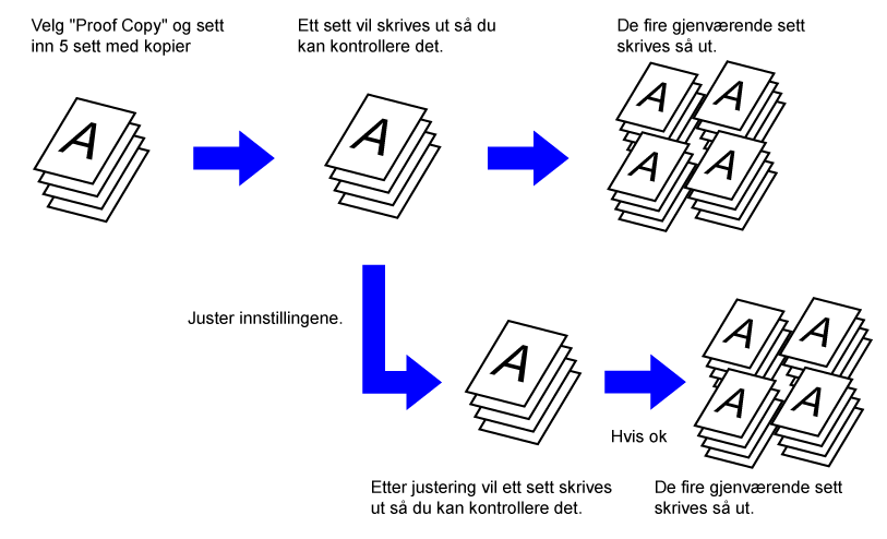 med en prøvekopi. Endre om nødvendig innstillingene. Denne funksjonen