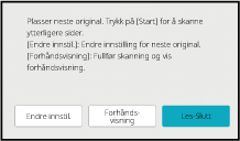 Gjenta dette trinnet til alle originalene er blitt skannet.Gjenta inntill alle sider har blitt skannet og kontroller forhåndsvisningsbildet på forhåndsvisningsskjermen.