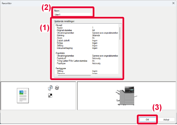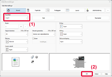 For beskrivelse av innstillingene, se Hjelp for skriverdriver.Hvis "Favoritt" er innstilt i skriverdriveren
