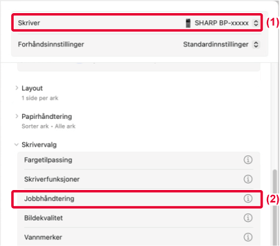 - Velg [Jobbhåndtering] fra "Skriveralternativer".