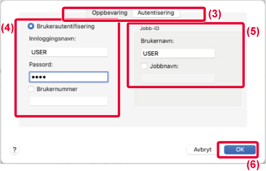 UTSKRIFT NÅR FUNKSJONEN FOR BRUKERAUTENTISERING ER AKTIVERT