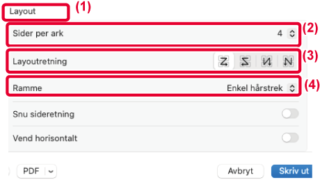 (4 sider på samme ark) velges, vil man oppnå følgende utskriftsresultat,