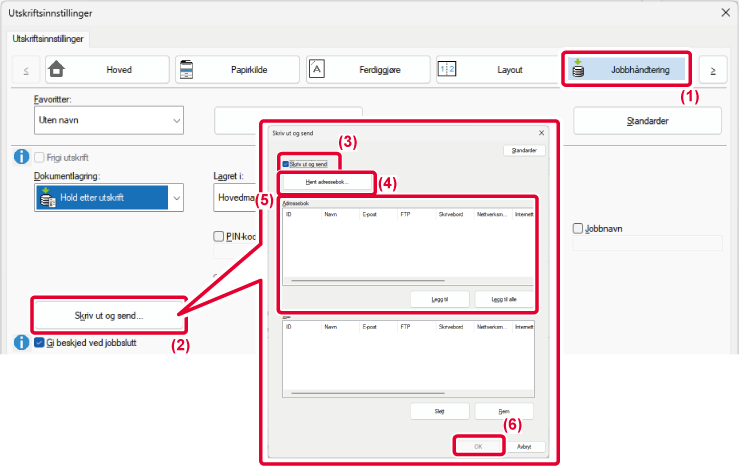 jobber skrives ut, må du i tillegg til brukerautentiseringsinformasjonen