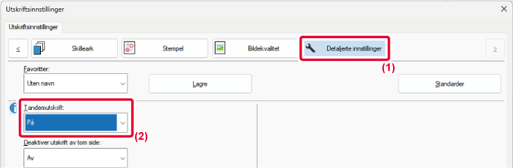 - Velg [På] i "Tandemutskrift".