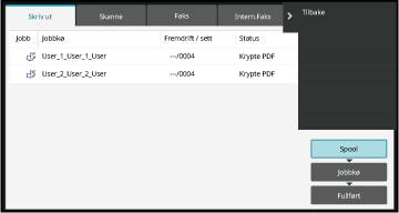 Når du trykker på jobbstatusskjermen, vises jobbene