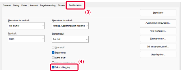 konfigurerer du innstillingene nedenfor i skriverdriveren.