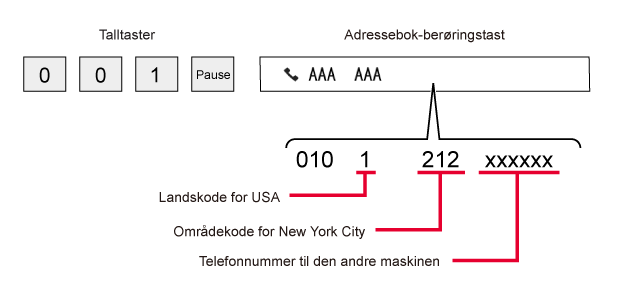 [Pause]-tasten mellom identifikasjonsnummeret til et internasjonalt