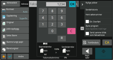 Du kan hente destinasjonsfaksnummeret ved å trykke på berøringstasten
