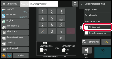 AUTOMATISK DOKUMENTMATERAngi destinasjonens faksnummer og trykk på [Dir. Overført] på handlingspanelet.