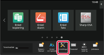 Forsikre deg om at informasjonsindikatoren blinker hvitt, og trykk på [Innstillinger]-tasten på hovedskjermen.