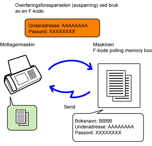 En original som skal sendes til en annen maskin med F-kodeavspørrings-kommunikasjon