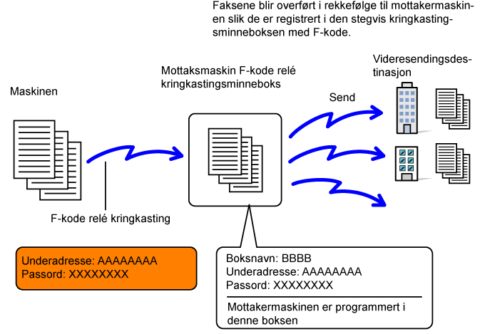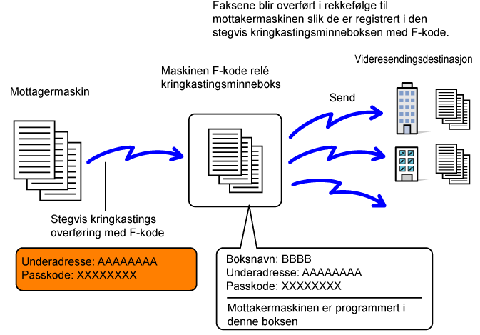 Maskinen din vil deretter videresende faksen til hver destinasjonsmaskin