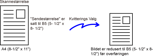 for eksempel er A4 (8-1/2" x 11") og sendestørrelsen er B5 (5-1/2" x 8-1/2"),
