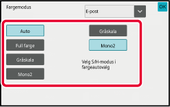 Maskinen gjenkjenner om originalen er i farge eller i sort/hvitt, og velger så full farge eller sort/hvitt (Mono2 eller Gråskala) skanning automatisk. |