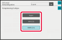 (På BP-51M26/BP-51M31/BP-51M36/BP-51M45/BP-51M55/BP-51M65 kreves OCR-ekspansjonssettet.) Trykk på [Komprimeringsfunksjon]- eller [Kompresjonsgrad]-tasten.