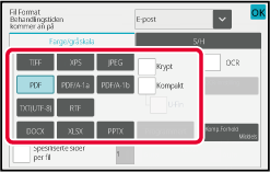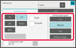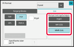 *1 Når PDF (inkludert kryptert og høy komprimering) velges for filformatet, kan flatekomprimering brukes til å redusere filstørrelsen.