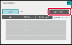 Trykk på [Skannestørelse]-tasten, etterfulgt av [Egendef.format]-fanen.