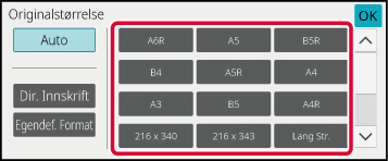 Trykk på en tast for ønsket originalstørrelse.