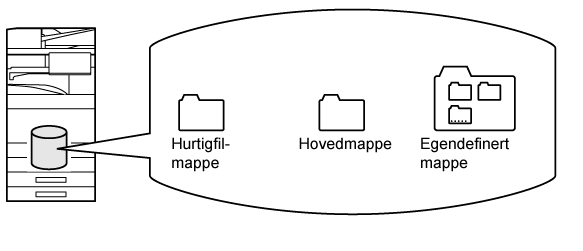 Når kopiering, bildesending eller en annen jobb utføres, lagrer denne funksjonen dokumentdata til den lokale stasjonen. I motsetning til med hurtigfil, kan ulike typer informasjon tilføyes til filen når filen lagres for å gjøre det mulig med effektiv filhåndtering. Et passord kan også opprettes. |