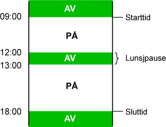 av til en forhåndsbestemt tid. Opp til tre (3) mønstre kan stilles