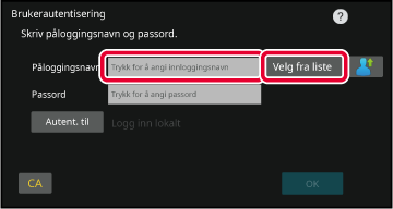 Velge fra en liste Trykk på [Velg fra liste]-tasten og velg et brukernavn fra Brukerliste-skjermen.