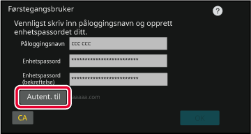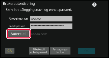 Trykk på [Autent. til]-tasten, og angi autentiseringsdestinasjonen.
