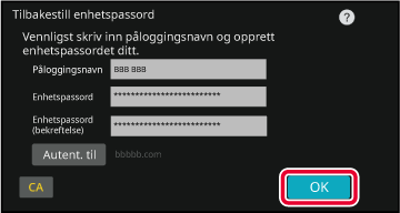 trykker du på "Tilbakestill enhetspassord"-tasten på skjermen som