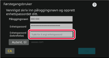 Skriv inn enhetspassordet som ble angitt i trinn 3,