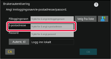 [E-postadresse] vises, avhengig av autentiseringsmetode. Trykk på [E-postadresse]-tekstboksen