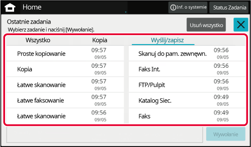 Po naciśnięciu przycisku [Ekran główny (Home)] na panelu dotykowym
