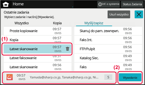 Naciśnij ten przycisk, aby wyświetlić listę ostatnio