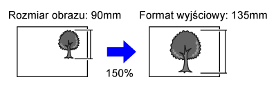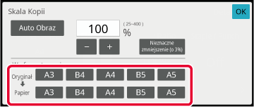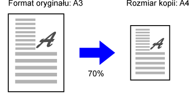 Skala pomniejszenia lub powiększenia jest wybierana automatycznie na stosownie do formatu oryginału i wybranego formatu papieru.