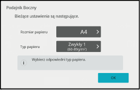 Naciśnij przycisk [Wybór papieru], a potem przycisk podajnika bocznego.