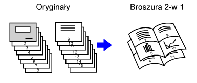 Ułóż oryginał na tacy automatycznego podajnika dokumentów lub na szybie dokumentów.Naciśnij przycisk [Inne], a następnie przycisk [Broszura], lub naciśnij przycisk [Sort. ze zszyw.], a następnie przycisk [Zszywanie Siodłowe].