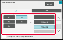 Wybierz zakładkę [AB] lub [Cale], aby określić format oryginału do kopii w rozmiarze plakatu, a następnie naciśnij przycisk odpowiadający formatowi oryginału.